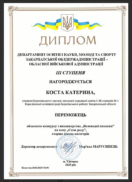 Напередодні світлого Великодня у „ПАДІЮНі” відбувся обласний етап Всеукраїнського конкурсу з писанкарства „Великодні писанки” на тему „Сила роду”. Щиро вітаємо ученицю 11-А класу Королівський ЗЗСО N1 Коста Катерину з перемогою